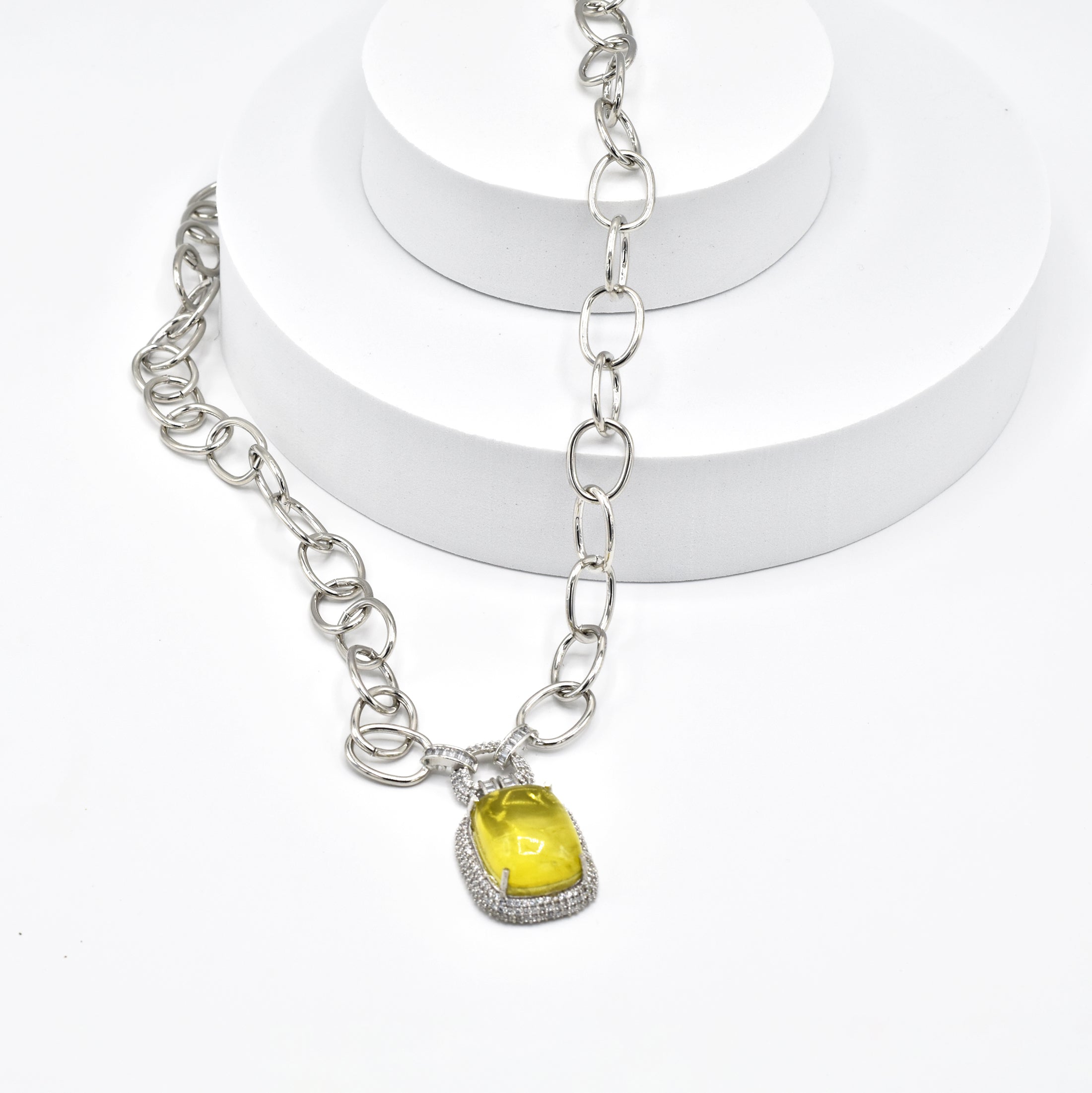 An exquisite pendant set with American Diamond studded half inch wide oozes an elegance and royalty.