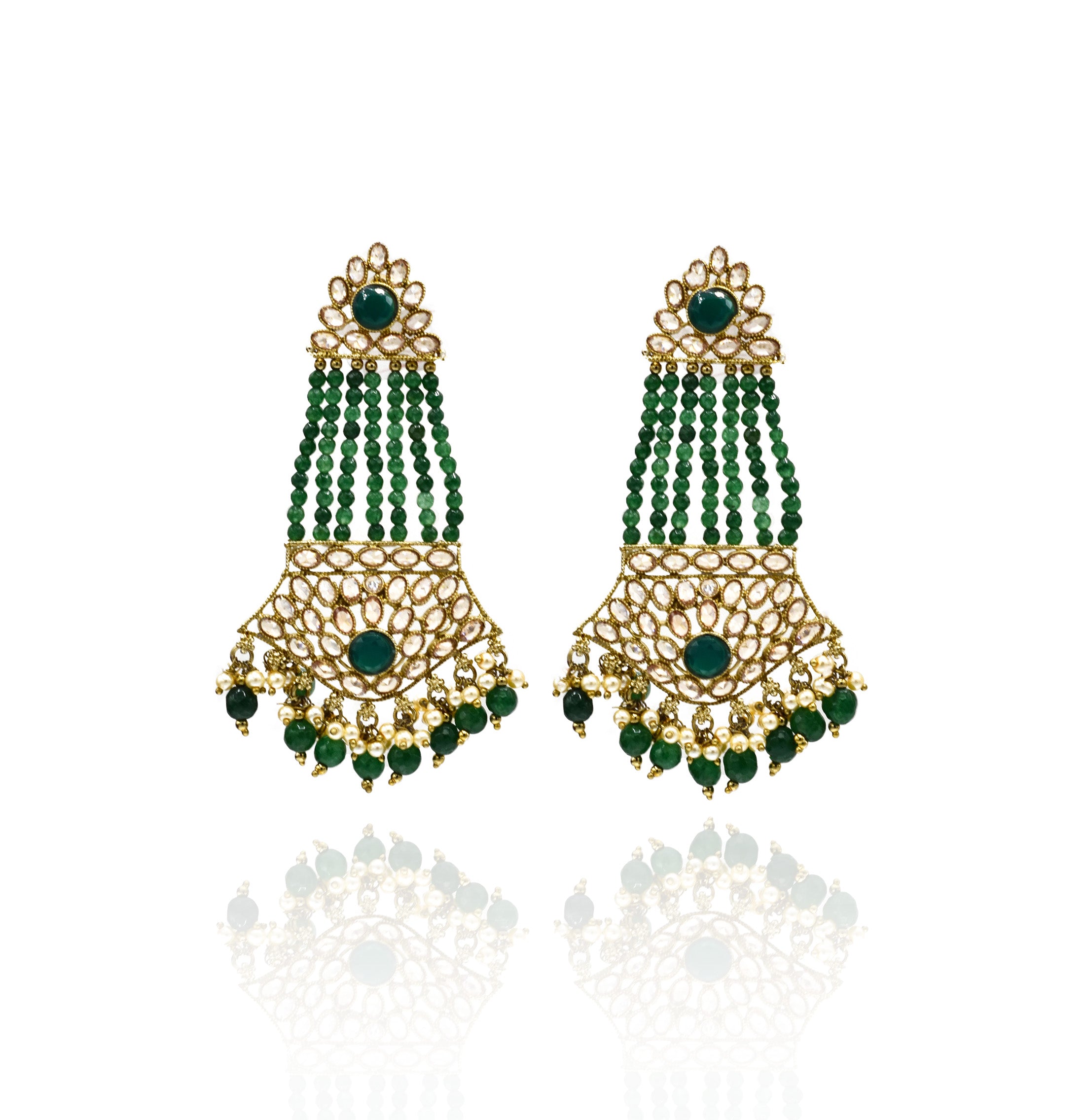 A mesmerizing pair embellished with Pearls, multicolored jarkan stones and gold polished.
