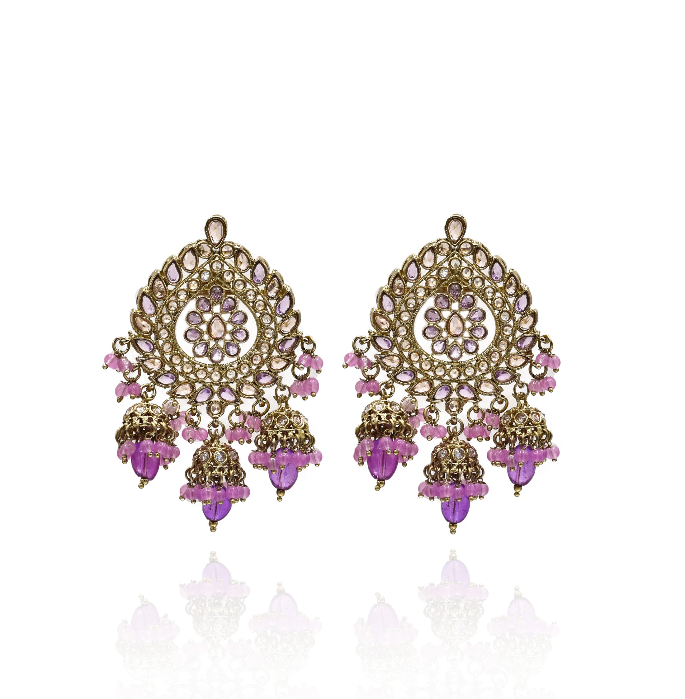 A mesmerizing pair embellished with Pearls, multicolored jarkan stones and gold polished.